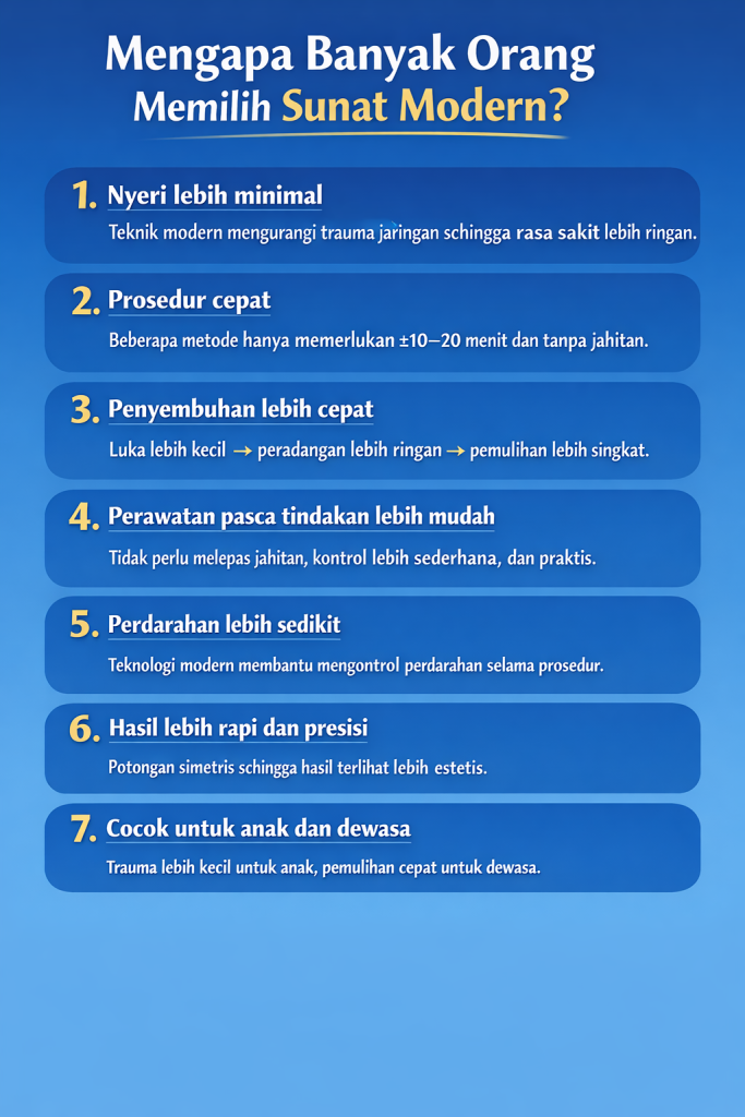 Sunat untuk remaja dan pria dewasa dengan metode yang aman, higienis, dan privasi terjaga, cocok untuk alasan medis maupun religi.